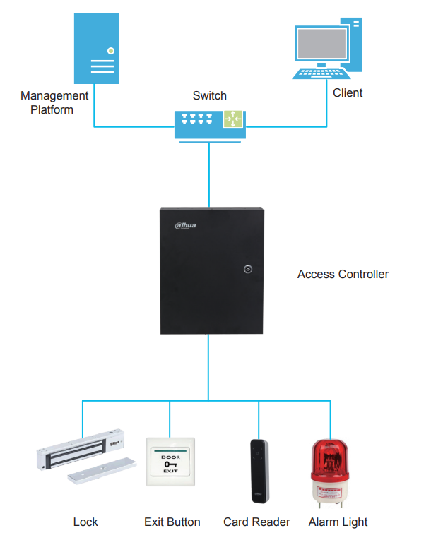 Material: panel de vidrio templado con grado de protección IP66, apto para uso en interiores y exteriores. · Reconocimiento de tarjetas de identificación sin contacto. · Desbloqueo de tarjetas. · Comunicación RS485 y Wiegand. · Alarma acústica e indicador. · Alarma antimanipulación. · El sistema de vigilancia integrado detecta y controla el funcionamiento anormal del equipo y realiza la recuperación para garantizar su funcionamiento a largo plazo. · Todos los puertos de conexión cuentan con protección contra sobrecorriente y sobretensión.