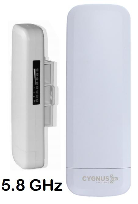 Radioenlace CCTV 5.8 GHz 300 Mbps Permite crear hasta 4 Access Points virtuales (virtual SSID) y también VLANs Análisis de canales Wi-Fi, para seleccionar el menos congestionado Funciones de control de acceso por dirección MAC Capacidad de clonación de MAC en modo Router o WISP Soporta control de usuarios, de tráfico, WLAN QoS y protocolo WMM Modos de operación: Super WDS, Router/Gateway, Access Point y Wireless ISP Configuración simple e intuitiva a través de consola web Antena interna tipo panel direccional de 14 dBi, con un alcance de hasta 5km Alimentación de 12 VDC (con fuente) o bien con PoE activo 48 VDC por norma IEEE 802.3 af/at directo desde un switch PoE, facilitando la instalación, y permitiendo un alcance de hasta 250m con un Switch PoE CCTV Cygnus Carcasa de ABS apta para intemperie IP65, a prueba de polvo, agua y rayos UV Temperatura de trabajo de -40 a 70 °C Ventajas del uso de 5.8 GHz: > Bandas de tráfico menos congestionadas, lo que ofrece mejor inmunidad ante fuentes de interferencia > Mayor ancho de banda / velocidad de transferencia > Ideal para enlaces punto a punto / punto a multipunto con línea de visión > Fácil instalación al alimentarse mediante PoE directo desde un Switch PoE > Menor zona de Fresnel: es un volumen formado con forma elíptica entre 2 puntos en un radioenlace donde, generalmente, se requiere que el frente de onda se encuentre obstruido menos del 20%. Al tener mayor zona de Fresnel, hay más probabilidades de obstrucción Contras: > Más susceptible a obstáculos: es necesaria la línea de visión (LOS) > Mayor atenuación de potencia en aire, niebla o lluvia > Recomendado para enlaces a cortas distancias con visión directa entre antenas > No es compatible con la mayoría de notebooks y cámaras IP (sólo en caso de usarlo como Access Point)