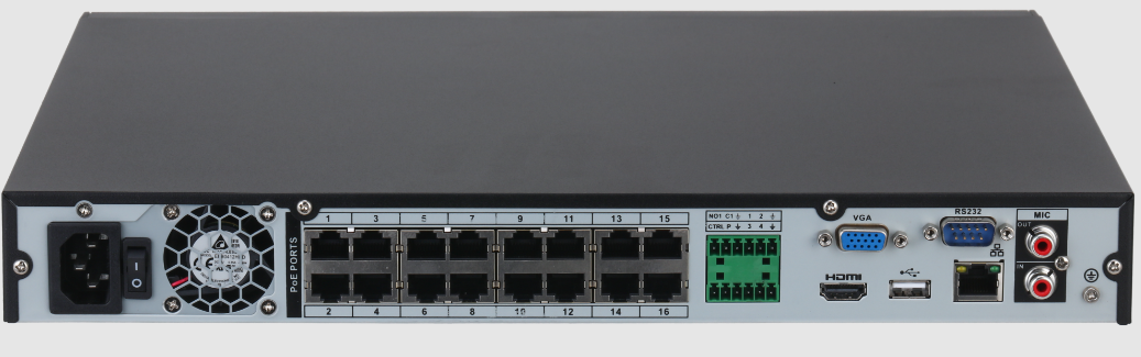 > Admite los formatos de decodificación Smart H.265+, H.265, Smart H.264+, H.264 y MJPEG. > Capacidad máxima de decodificación: 8 × 1080p a 30 fps o 2 × 8 MP a 30 fps. > Ancho de banda máximo de 160/160/80 Mbps de entrada/grabación/salida. > Admite cámaras IP con una resolución de hasta 12 MP. > AI by Recorder admite SMD Plus de 4 canales. > La IA mediante cámara admite detección y reconocimiento facial, protección perimetral, SMD Plus, conteo de personas, análisis estéreo y mapas de calor. > Admite EPTZ y armado y desarmado con un solo clic.