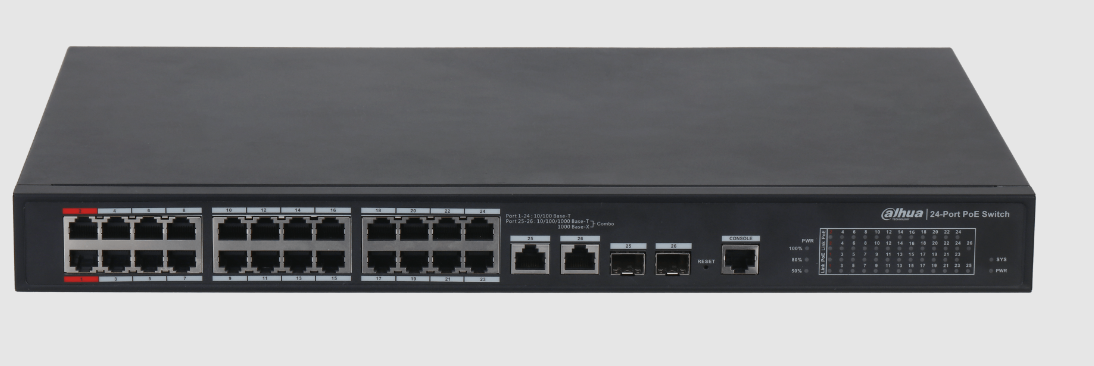Switch PoE gestionado de 24 puertos a 100 Mbps + 2 puertos Gigabit
